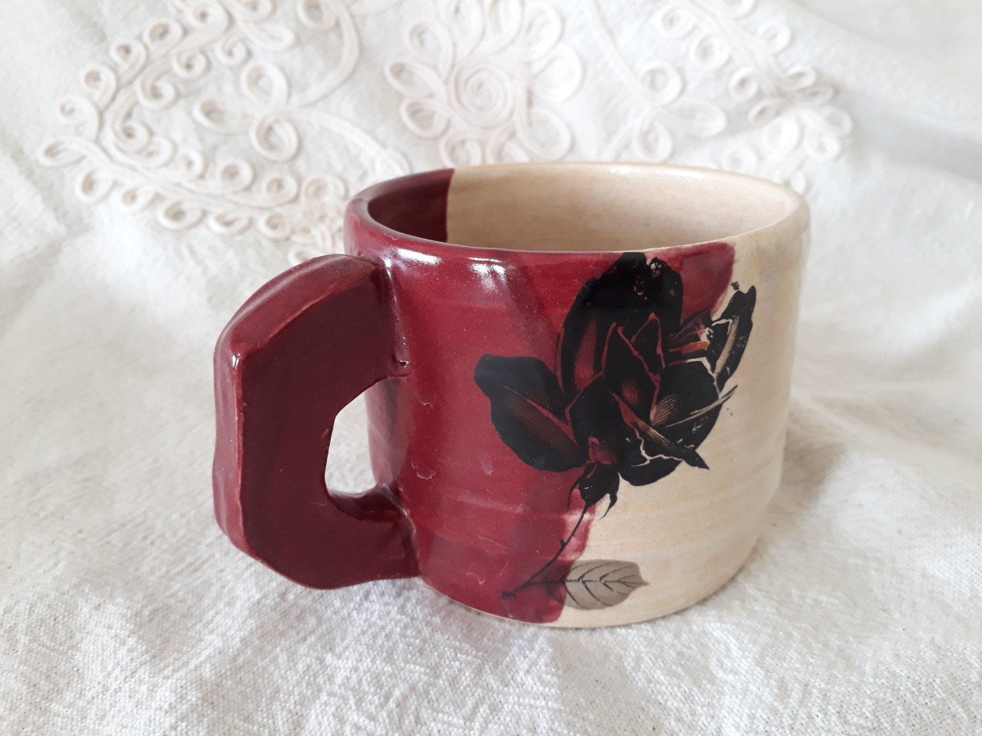 ספל בורדו לבן ודוגמא שחור 60 ש"ח